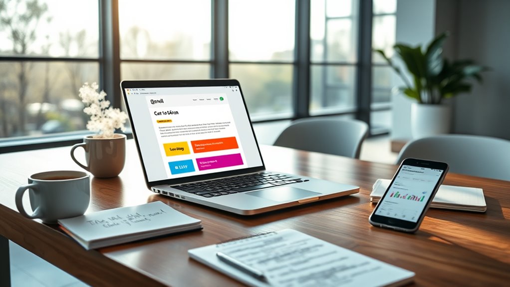 To write engaging email content, start with a compelling subject line that sparks curiosity and relevance. Keep your message concise, personalized, and aligned with the reader’s interests. Use storytelling or relatable scenarios to connect emotionally, and break up the text for easy scanning. Incorporate clear, persuasive calls to action that guide recipients seamlessly toward your desired outcome. Keep these elements purposeful and impactful, and you’ll discover more strategies to boost your email success as you continue.