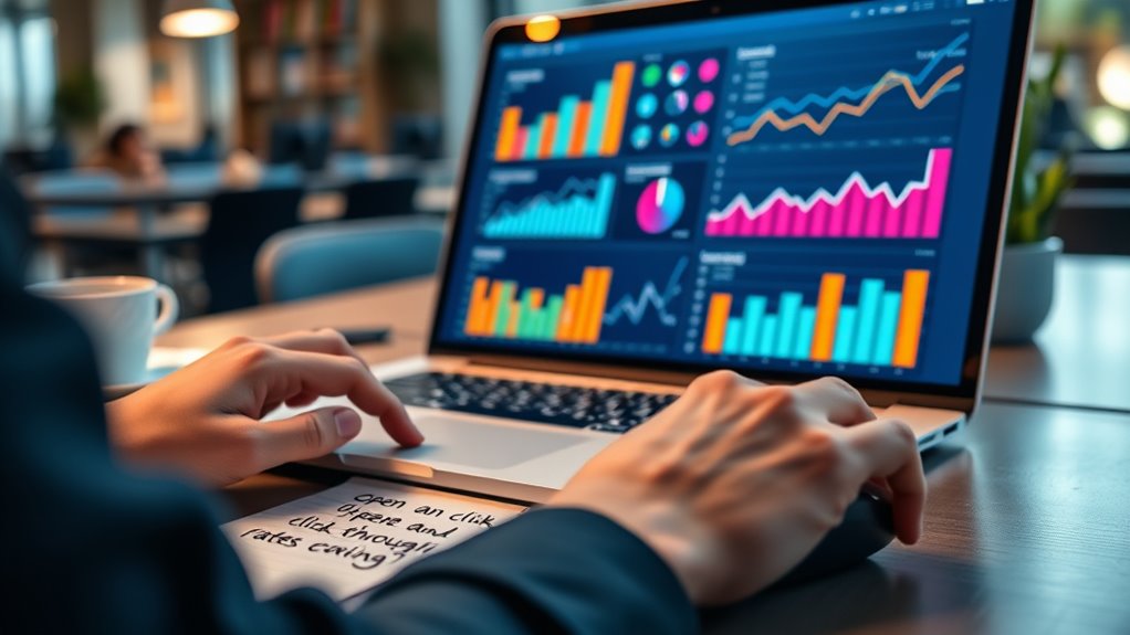 Open rates are often the first indicator of your email’s effectiveness. They tell you how many recipients actually open your message, giving you a glimpse into your subject line’s appeal and your sender reputation. If open rates are low, it might be time to revisit your subject lines, personalize your content, or optimize your sending times. Spam filtering plays a pivotal role here—if your emails are flagged by spam filters, your open rates will plummet, regardless of the content’s quality. To avoid this, steer clear of spammy language, overuse of symbols, or misleading subject lines. Maintaining a good sender reputation helps guarantee your emails land in inboxes rather than spam folders. Additionally, understanding email deliverability is essential, as it influences whether your emails reach your audience at all.