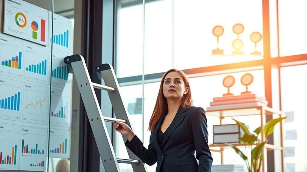 Don’t let your career ambitions blind you—balance work and life to avoid burnout. When negotiating salary, don’t undervalue your worth or rush decisions; confidence is key. Avoid neglecting professional development or burning bridges, as they’re often the fastest way to stall progress. Remember, sustainable growth depends on strategic moves, not reckless leaps. Prioritize clear goals, healthy boundaries, and ongoing learning to guarantee steady advancement without sacrificing your well-being.