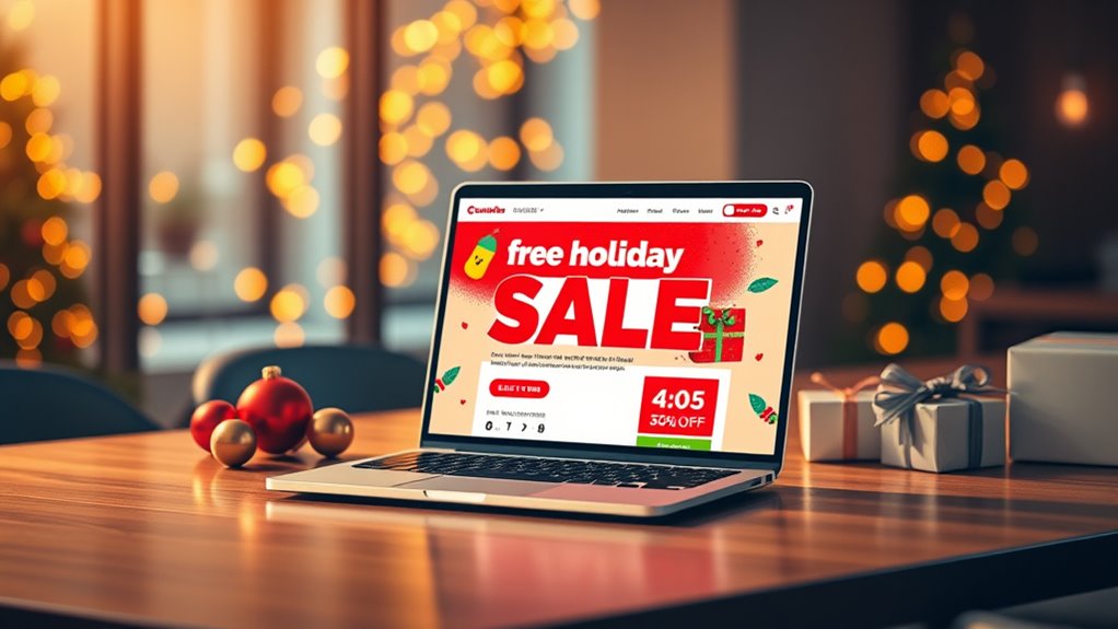 To craft a holiday sale announcement email that drives urgency, focus on personalized messaging with your recipient’s name and tailored offers. Use clear, time-sensitive language like “Limited Time Only” or “Ends Tonight,” and include countdown timers or striking visuals. Highlight exclusive discounts and festive graphics to boost engagement. Make your call-to-action compelling and visible, emphasizing how they’ll miss out if they delay. Keep these tips in mind, and you’ll uncover more ways to boost your campaign‘s effectiveness.