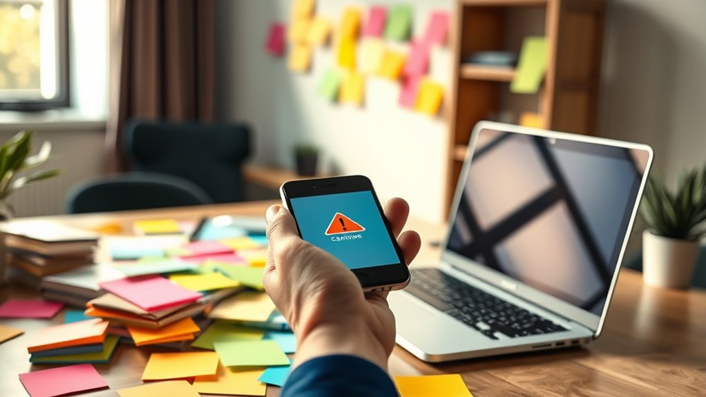 To avoid chain emails and over-forwarding, always verify the authenticity of messages before sharing them. Think twice before hitting send, especially if the email asks you to forward it to many people. Don’t click on suspicious links or open unknown attachments, as they can harm your device. Share only trustworthy, relevant info to keep your inbox clean and secure. Continuously practicing cautious email habits will help protect you—discover more tips to stay safe.