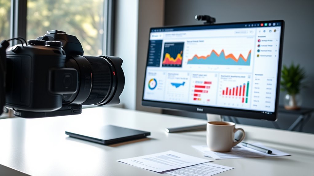 You should focus on engagement metrics like click-through rates and conversions, which offer clearer insights into your campaign’s success. Use subject line testing to optimize open interest and personalization strategies to boost relevance, encouraging recipients to act. Tracking these metrics helps you understand audience behavior beyond open rates, ensuring your emails resonate and drive results. Adjust your tactics based on these data points for continuous improvement.