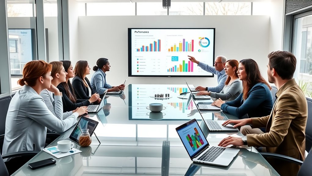 You should focus on metrics like conversion rate, customer lifetime value, and engagement rate to evaluate segment performance. These metrics reveal insights into customer behavior and help confirm your segmentation accuracy. By analyzing these indicators, you can determine if your segments are truly representative and driving results. Regularly investigating these metrics guarantees your segmentation strategy remains effective, allowing you to refine your approach based on real performance data.