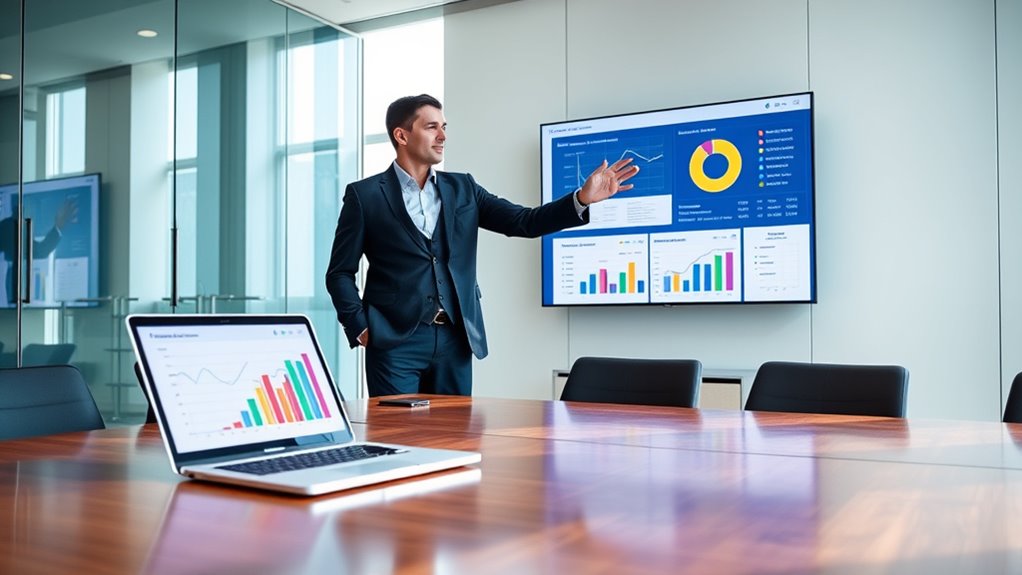 To justify email ROI in the boardroom, focus on metrics beyond open and click rates. Highlight engagement indicators like time spent, reply actions, and forward behavior to show content relevance. Emphasize conversion rates and customer lifetime value, demonstrating tangible results and long-term loyalty. Showcase how personalized messaging boosts engagement and sales, backing your case with data-driven insights. Continuing will equip you with the strategic metrics needed to confidently demonstrate email marketing impact at the executive level.