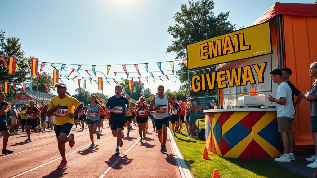 Running contests and giveaways is a quick, effective way to grow your email list while boosting your brand’s visibility. By offering prizes that align with your audience’s interests, you encourage participation and sharing across social media platforms. Keep your entry process simple and transparent, and promote the contest consistently. Tracking results and refining your approach will help you maximize success. If you want to discover proven strategies behind successful campaigns, there’s more to explore below.