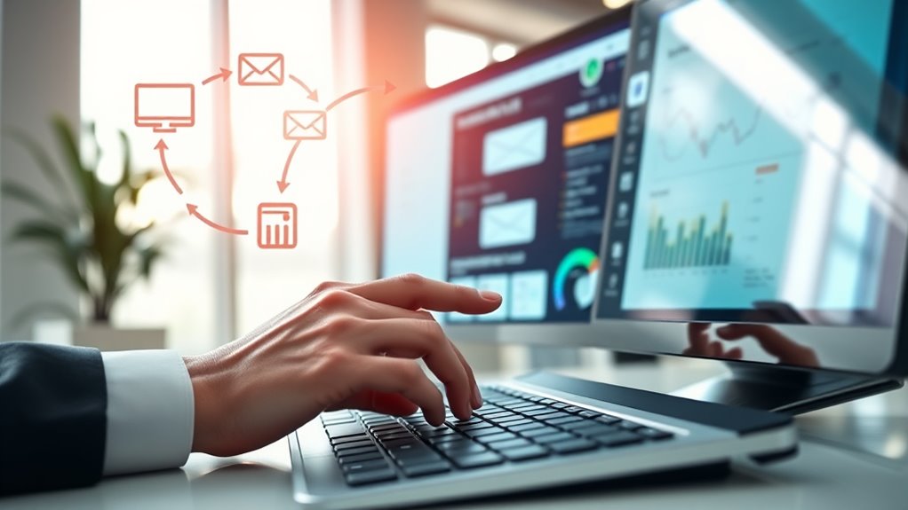 Um selbsttragende E-Mail-Flywheels zu schaffen, konzentrieren Sie sich darauf, Ihre bestehenden Kunden mit gezielten, personalisierten automatisierten Kampagnen zu pflegen, die durch ihr Verhalten ausgelöst werden. Nutzen Sie diese Berührungspunkte—Begrüßungs-E-Mails, Empfehlungen und Reaktivierungen—um den Dialog aufrechtzuerhalten und die Loyalität zu fördern. Sammeln Sie Interaktionsdaten, um zukünftige Nachrichten zu verfeinern, und fördern Sie organisches Wachstum durch zufriedene Kunden, die Sie weiterempfehlen. Dieser kontinuierliche Zyklus kann sich zu einer kraftvollen, selbsttragenden Engagement-Schleife entwickeln, die langfristigen Erfolg erzielt; erkunden Sie, wie Sie sie effektiv einrichten können.