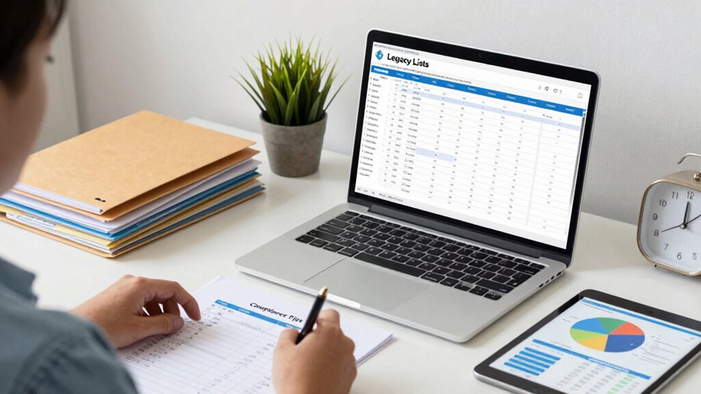 You should review legacy lists at least quarterly to guarantee data validation and address privacy concerns. Regular reviews help identify outdated or inaccurate information, reducing compliance risks. During each check, verify that contact details are current and that consent for communications remains valid. By maintaining a consistent review schedule, you protect customer privacy, stay aligned with regulations, and keep your lists compliant without creating unnecessary headaches.