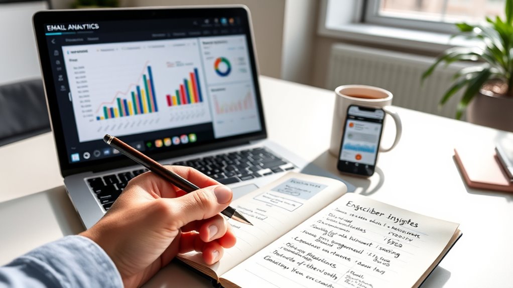 You should update your understanding of subscriber behavior regularly, ideally through ongoing A/B testing and analyzing engagement data. This helps you refine content personalization strategies and stay aligned with evolving preferences. Aim to review metrics monthly or after significant campaigns. Staying proactive allows you to adapt quickly, ensuring your email strategy remains relevant and effective, ultimately boosting engagement and conversions.