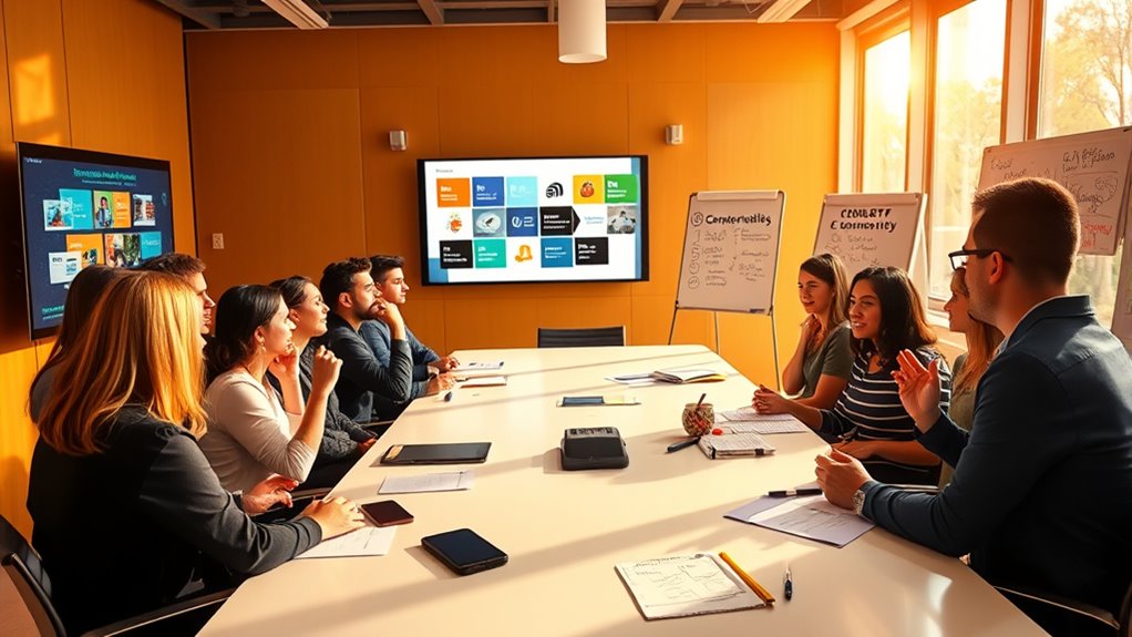 To build engagement during warmup, start by incorporating quick, interactive activities like posing thought-provoking questions, launching instant polls, or using visual prompts. Encourage participants to respond via chat or reactions and acknowledge their input to foster involvement. Keep activities energetic and brief to maintain attention and create a lively atmosphere. By using these strategies, you set a positive tone and motivate ongoing participation—keep going to discover even more ways to energize your audience.