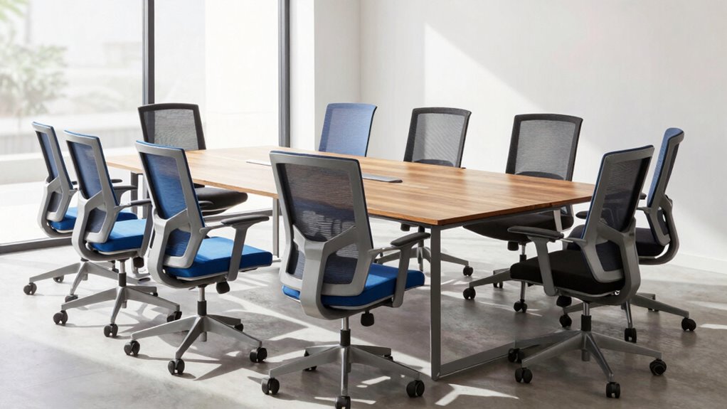 Maximizing your workspace is essential, especially if your home office is limited in size. Space-saving ergonomic chairs are designed to fit comfortably under desks, freeing up valuable room. Many models feature foldable or flip-up armrests, allowing you to reduce their footprint when you don’t need them. Retractable footrests and adjustable backrests offer added flexibility, transforming the chair into a relaxed seat without extra space. Slim profiles ensure the chairs don’t overwhelm small rooms, making them ideal for shared environments. Some models even have vertical stacking capabilities, making storage simple and efficient when not in use. Choosing a space-efficient chair helps keep your workspace organized and clutter-free, so you can focus on your work without feeling cramped or distracted.