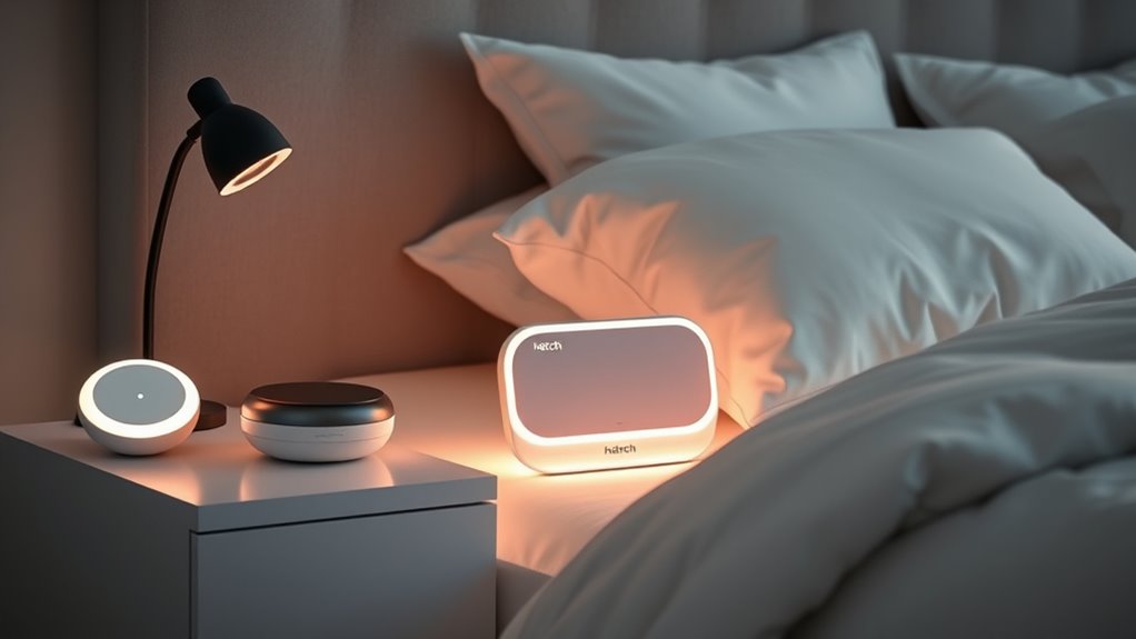 If you’re looking for the best Hatch Restore 2 alternatives in 2025, I recommend options like portable sleep devices, customizable sound machines, and smart sleep routines like the Rest+ Baby Sleep Bundle or portable Rest Go. Devices with natural sounds, sunrise alarms, and portability are perfect for versatile sleep support at home or on the go. Keep exploring for detailed insights on these top picks and what makes them stand out.