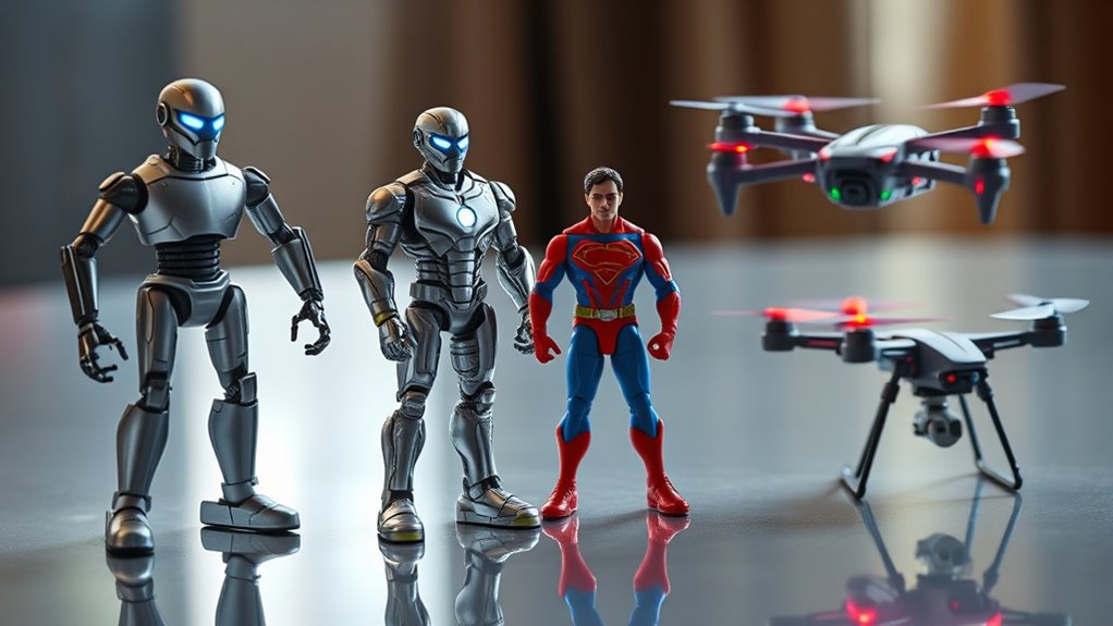 Interactive elements can substantially boost a 7-year-old boy’s excitement and engagement with his new toy. Features like gesture control, motion sensors, and app integration make play more dynamic and immersive. Toys that include lights, sounds, and spray effects stimulate the senses, keeping kids captivated. Capabilities such as 360° flips and drift functions encourage active movement, helping develop motor skills. Remote-controlled options with multiple control modes, including hand gestures and traditional remotes, increase versatility and fun. Smart feedback systems, like voice prompts or visual cues, make interactions more engaging and intuitive. When choosing a hot toy, consider how these interactive elements can transform playtime into a lively, stimulating experience that keeps a young boy entertained and encourages his imagination.