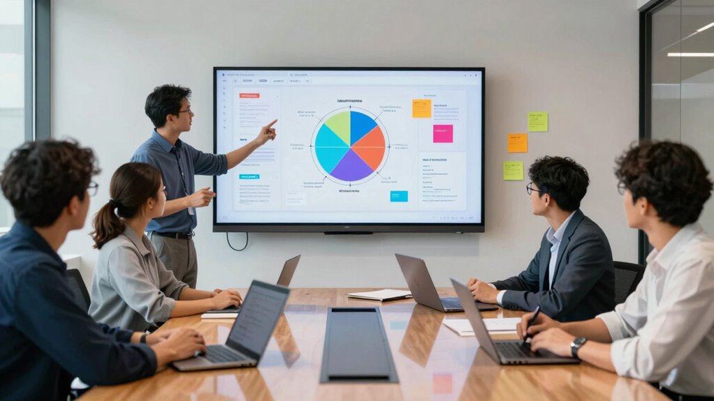 When selecting an interactive whiteboard for brainstorming, I consider several key factors to guarantee it meets our needs. Things like screen size and resolution impact visibility, while touch responsiveness affects ease of use. Compatibility, portability, and multi-user features also play a crucial role in creating effective, collaborative sessions.