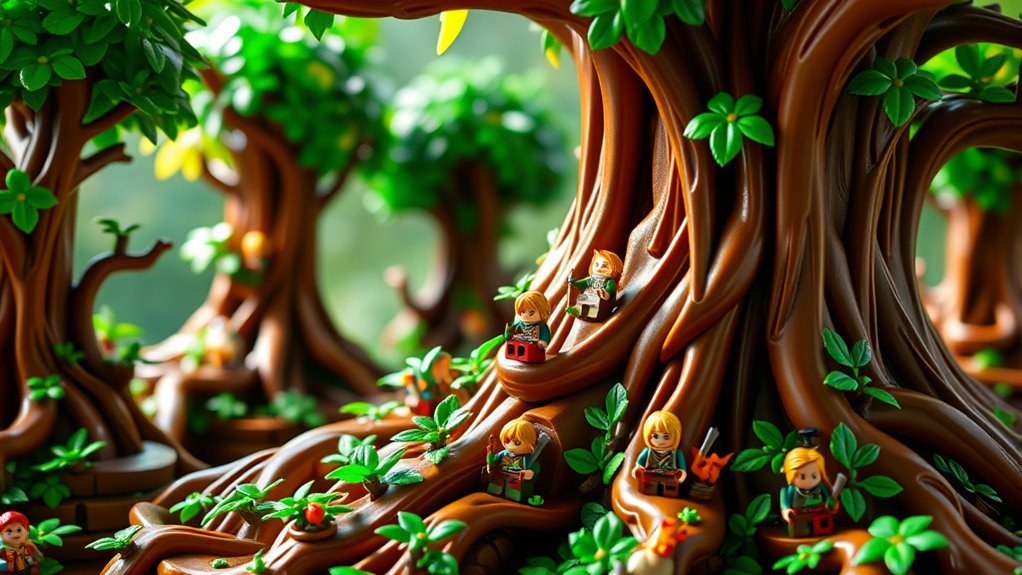 If you’re looking for the best Lego Zelda Great Deku Tree sets, I recommend options that include stunning lighting kits, like the YEABRICKS and BrickBling LED solutions, which enhance display and safety. Protective display cases, especially 3mm acrylic ones, help preserve your build’s details. There are also themed accessories, like the Koroks building set, that add to the charm. Keep in mind compatibility, ease of assembly, and durability. Continue to explore more to find the perfect set for your collection.
