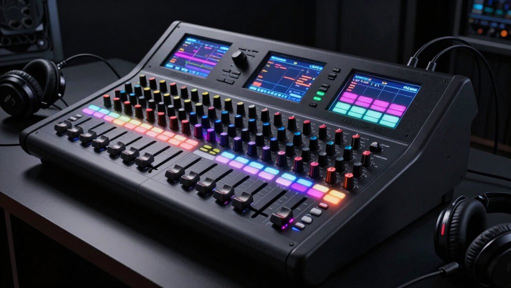 When selecting a mixing console for live streaming, I consider key factors like connectivity options, microphone compatibility, and built-in effects. Portability, size, and recording capabilities also play a big role in my decision-making process. Understanding these points helps guarantee I choose a console that fits my specific streaming needs.