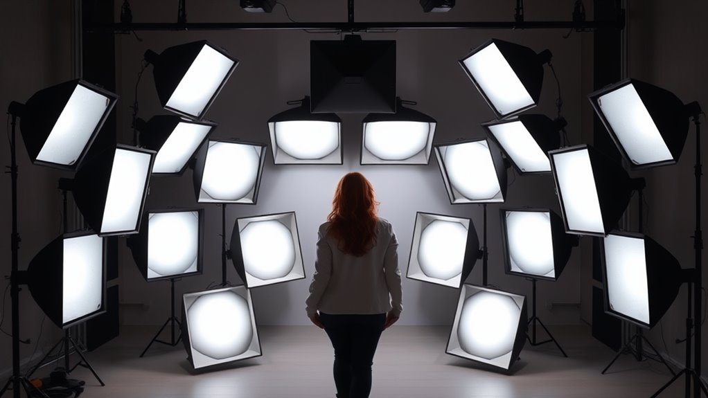 If you’re looking for the 15 best photo-lighting soft boxes for perfect shots in 2025, I’ve found a mix of options perfect for various needs, from compact setups to professional studio lighting. I consider factors like size, brightness, color control, and portability to guarantee you get high-quality illumination. Whether you’re an amateur or pro, selecting the right soft box can make a big difference—keep exploring, and you’ll discover all the key details to enhance your photography.