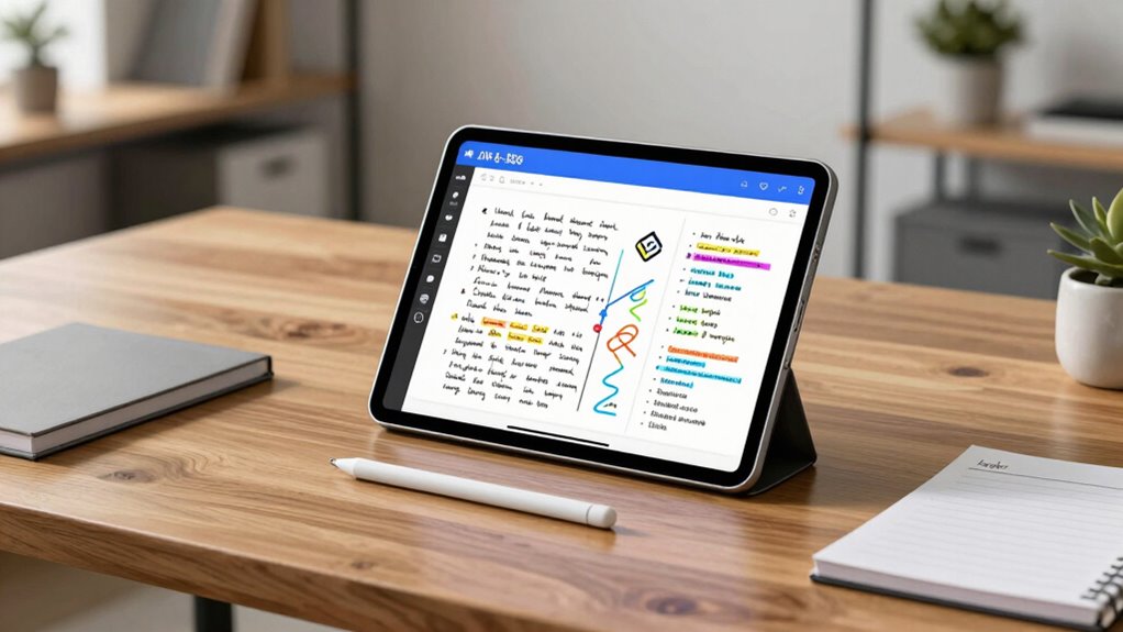 Think of the right tablet as a well-stocked toolbox for your academic needs. I find that the iPad with Apple Notes and Notability offers the best software for note-taking, thanks to seamless syncing, versatile annotation features, and robust organization tools. Samsung Galaxy Tab S8 with Samsung Notes is also impressive, especially for Android users. These apps turn your device into a powerful, efficient station for capturing and managing your studies.
