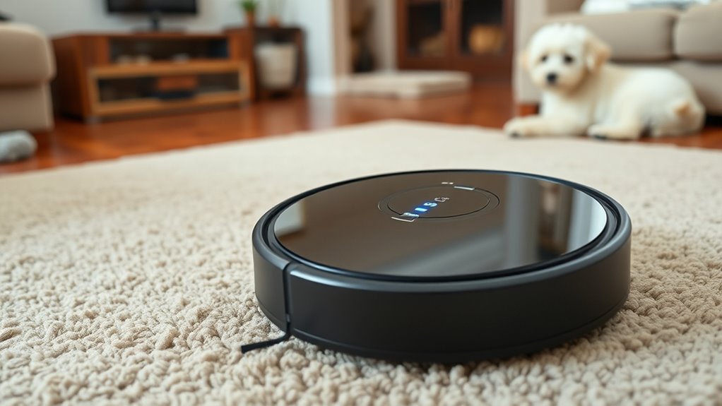 If you want a robot vacuum that conquers pet hair like a superhero, these top-rated options are your secret weapon. They’ll obliterate fur, dust, and dander faster than you can blink, giving you a fur-free home without lifting a finger. Trust me, once you see these machines in action, you’ll wonder how you ever survived pet chaos before. Say goodbye to pet hair drama forever—these vacuums are truly game-changers!