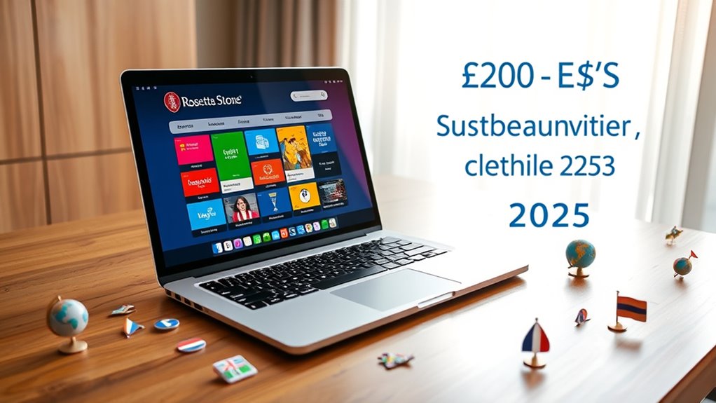 If you’re like me, finding the perfect Rosetta Stone lifetime deal feels like hitting a hidden gem—serendipity at its best. With these top offers, you’ll unseal languages effortlessly and maybe even stumble upon your next passion. Don’t wait too long; these deals tend to disappear as quickly as they appeared. Trust me, taking action now could turn out to be the best coincidence you’ve experienced in your language learning journey.
