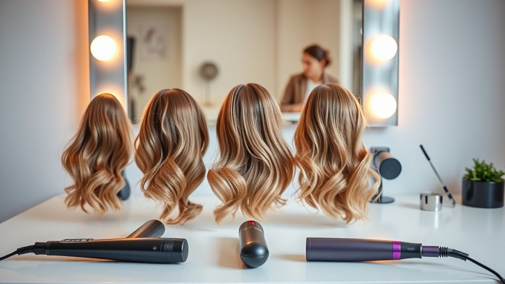 Heat damage prevention is a key factor to contemplate when choosing between the Shark FlexStyle and Dyson Airwrap. Both tools incorporate advanced heat management technology that minimizes damage by continuously measuring and adjusting temperatures hundreds or thousands of times per second. They also offer adjustable heat settings—low, medium, and high—so you can tailor heat levels to your hair type and styling needs. Features like auto-shutoff and cool shot functions help lock in styles while reducing prolonged heat exposure, further protecting your hair. However, regardless of the device, proper use and selecting the right attachment are vital for minimizing heat damage. By understanding these features, you can make a more informed choice and keep your hair healthier while achieving your desired style.