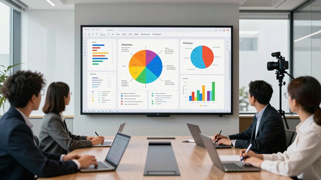 A strong software and app ecosystem is indispensable for making remote workshops engaging and efficient. It enables seamless integration with popular collaboration tools like Zoom, Microsoft Teams, and Google Meet, guaranteeing smooth communication. Compatibility with various applications such as digital whiteboards, annotation tools, and content sharing apps adds flexibility to interactive sessions. Access to a broad selection of educational and productivity apps through app stores or pre-installed software expands functionality and customization options. Support for wireless casting and screen mirroring from Windows, macOS, iOS, and Android devices makes content sharing effortless across different platforms. Regular software updates and security patches are crucial to maintain stability, protect data, and ensure compatibility with evolving remote collaboration platforms, keeping the whiteboard reliable and secure.