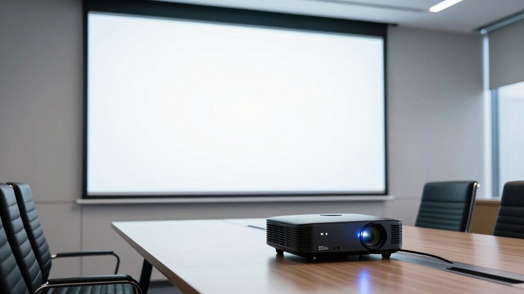 Connecting these projectors to existing AV equipment is as smooth as butter. Most ultra-short-throw projectors feature multiple ports like HDMI, VGA, and USB, making integration straightforward. I’ve found that checking compatibility beforehand guarantees everything syncs seamlessly, and many models support wireless connections too. This flexibility means you can set up your training room without a hitch, creating an engaging learning environment effortlessly.