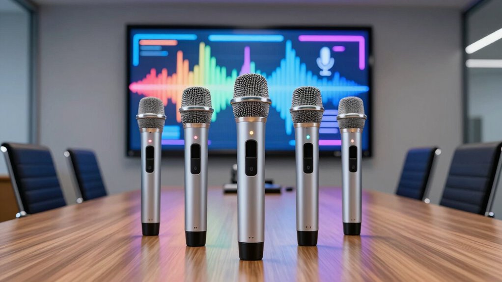 Choosing the right wireless handheld microphone system is like finding the perfect key to unseal clear, confident communication in your training room. With options ranging from powerful PA systems to versatile dual-channel sets, there’s something for every need. By considering factors like range, battery life, and sound quality, you’ll guarantee your presentations shine. Trust me, selecting the right system will make your training sessions feel as smooth as a well-conducted orchestra.